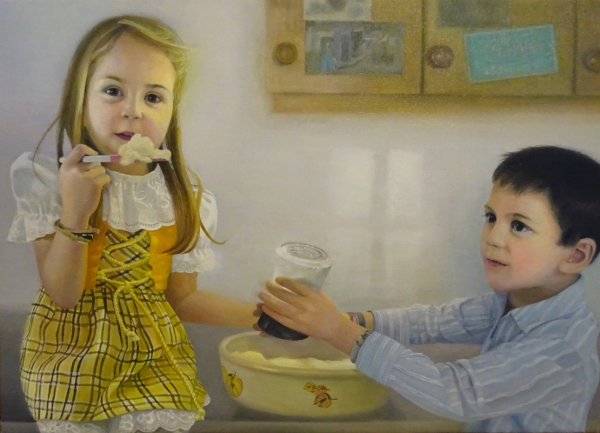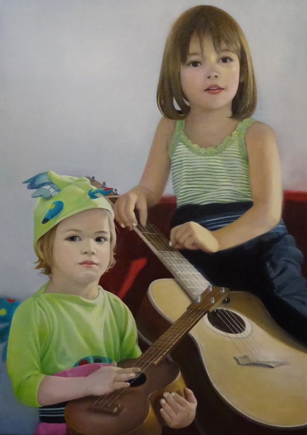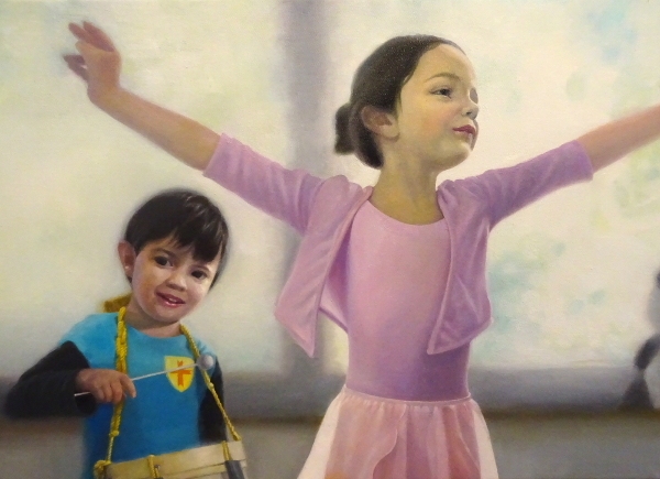Ich male Kinder die etwa 4 Jahre alt sind, da dies das Alter ist in dem man beginnt Erlebnisse im Langzeitgedächtnis abzuspeichern. Aber die Erinnerungen sind in diesem Alter noch nicht fest, sondern wie unrealistische Elemente in einem Traum, wodurch Teile der Erinnerungen unklar wirken.