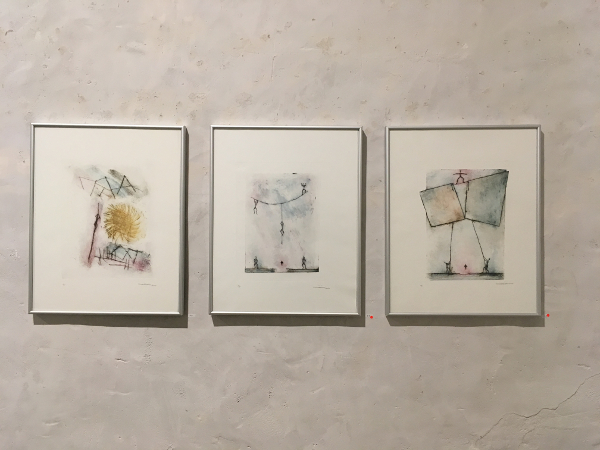 Der Kunsthistoriker Walter Ruppen bezeichnete Willisch vor Jahren als Künstler, der nach Harmonie strebt, sie aber dann immer wieder zerstört. Zeitweise lässt sich dieser Satz auch umkehren. Nach der Auseinandersetzung sucht er Antworten in der Harmonie. Unter den schlichten Titeln „Strukturgebilde 1-6“ zeigt Walter Willisch seine jüngsten Radierungen, die 2016 entstanden sind. Beidseitig vertikale Linien machen einer dunklen Mitte Platz. Es herrscht die Symmetrie. In diesen Radierungen, wie vor Jahren bereits in der Malerei, sucht hier der Künstler Ruhe in einer strengen, meditativen Abstraktion. Denn wie keine andere Kunstrichtung erlaubt die Abstraktion eine Befreiung vom Denken und ein Finden der Harmonie.
