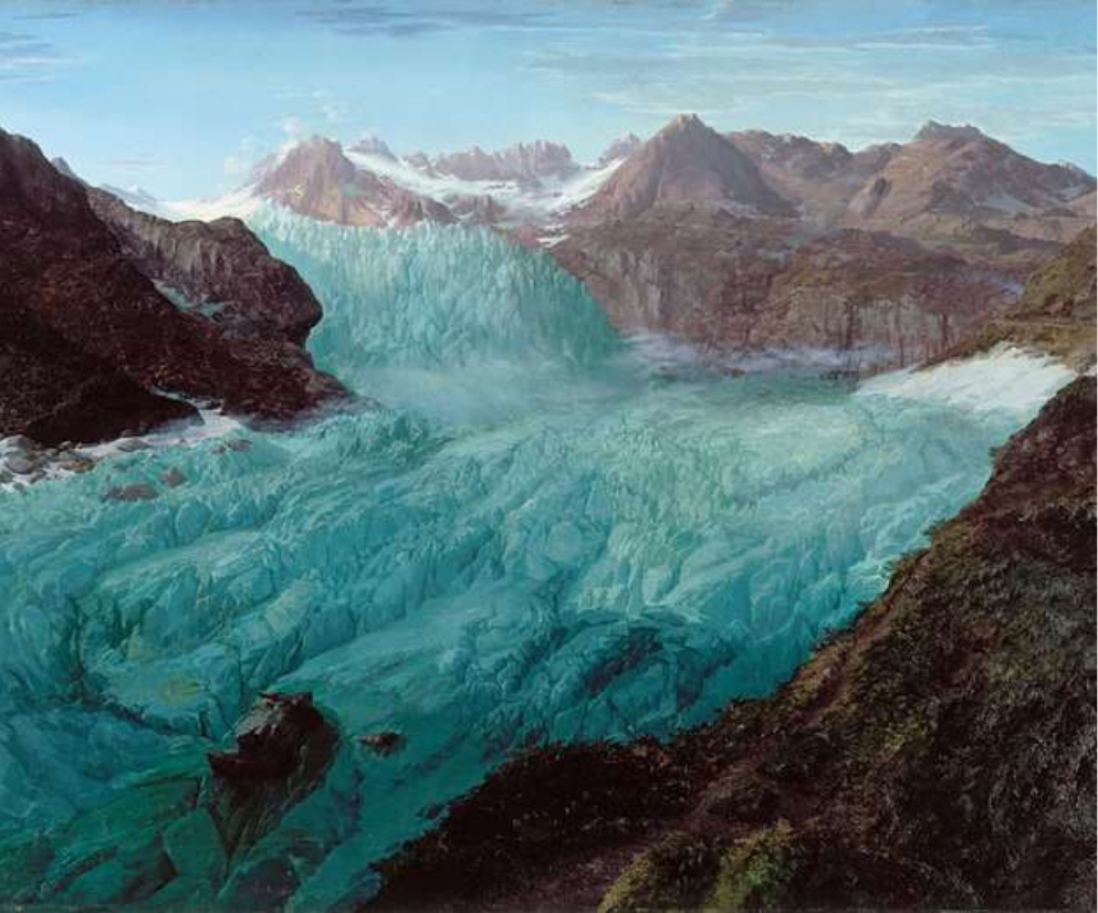 In der Sammlung der Walliser Kantonalbank befindet sich ein sehr hoher Anteil Werke schweizweit und international bekannter Landschaftsmaler, auf die das Wallis eine starke Anziehungskraft ausübte. Stellvertretend seien hier erwähnt: Kaspar Käsli mit dem auf dieser Karte abgebildeten «Rhonegletscher» von 1878, «le torrent dans les roches» von Gustave Courbet, der «Mont Collon» des Genre-Malers und Alpinisten Rafael Ritz, die «Riffelalp» von Albert Gos, die «Allerheiligenkapelle» von Raphy Dall?ves, dessen Hinterlassenschaft von 200 Werken die Gründung des Kunstmuseums in Sitten erlaubte. Auch der Walliser Maler von internationalem Renommee, Fernand Dubuis, ist mit dem Landschaftsbild «Tourbillon et Val?re» vertreten, ebenso Leo Andenmatten mit «der gelben Landschaft» und Gottfried Tritten mit «dem blauen Berg».