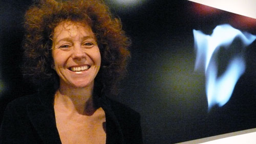 Sie arbeitet in freier Natur, fotografiert die Reflexe des Lichts im Wasser und gibt diese in ihrem Atelier unter freiem Himmel, einem ausgedienten Steinbruch in St. Triphon in steiniger Form wieder.