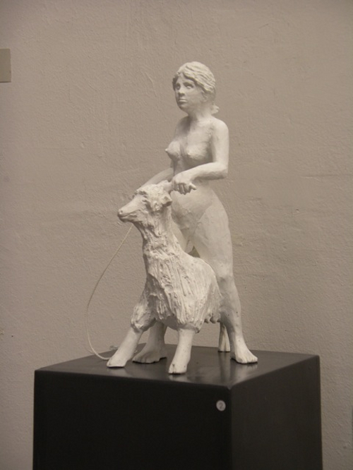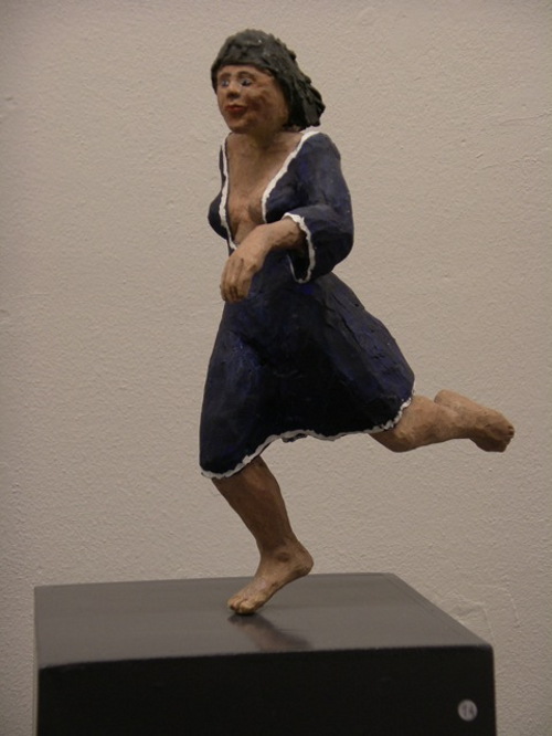 „Als Wortmensch, der mit Schreibzeug und Papier herumwerkt, sprechen mich die Arbeiten mit sprachlichen Bezügen besonders an. Der grosse rote Bleistift mit dem Knoten zum Beispiel. Er verweist für mich auch auf die vielgefürchtete Schreibblockade, ein Horror für jede Schriftstellerin. Und jeden Schriftsteller. Damit die Schrift fliesst, muss der Knopf erst aufgehen. Dieser rote Bleistift schreibt auch mit Knoten, aber wir müssen, wegen seiner ungewohnten Grösse, beide Hände zu Hilfe nehmen - eine Anspielung an den Kraftakt, der jedem künstlerischen Produkt, sei es eine Zeichnung, ein Text oder ein Druck, innewohnt. Gusti Oggiers Bleistift zwingt uns, körperlich aktiv zu werden, was uns bewusst macht, dass jeder Schreibakt ein Einsatz ist, der neben geistiger auch körperliche Energie fordert.