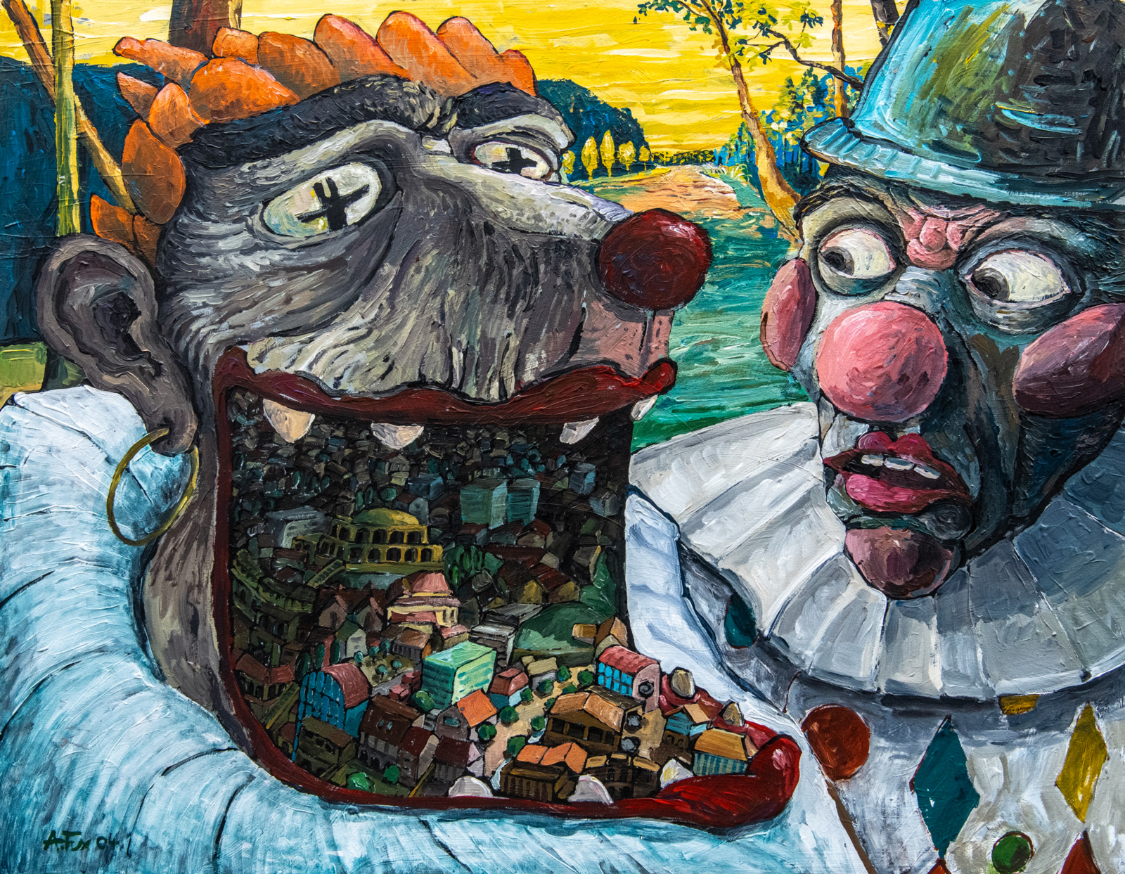 Durch grossformatige Acrylmalereien bis hin zu kleinformatigen Filzstiftzeichnungen werden wir in eine Welt entführt, die uns bekannt und fremd zugleich erscheint.