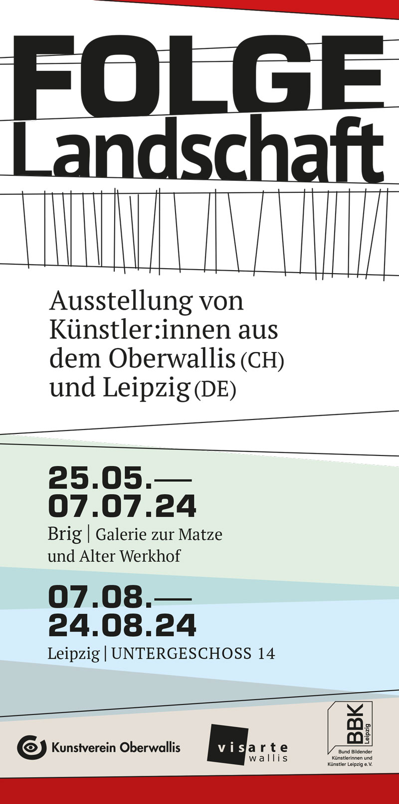 Die Künstler und Künstlerinnen von visarte Wallis und BBK Leipzig befassen sich in ihren Arbeiten mit der Veränderung von Landschaft durch den menschlichen Eingriff in die Natur. Sogenannte Folgelandschaften entstehen z.B. in den Braunkohletagebaugebieten um Leipzig aber auch im Wallis. Um dieses zu beleuchten findet eine gemeinsame Ausstellung sowohl in Brig als auch in Leipzig statt.